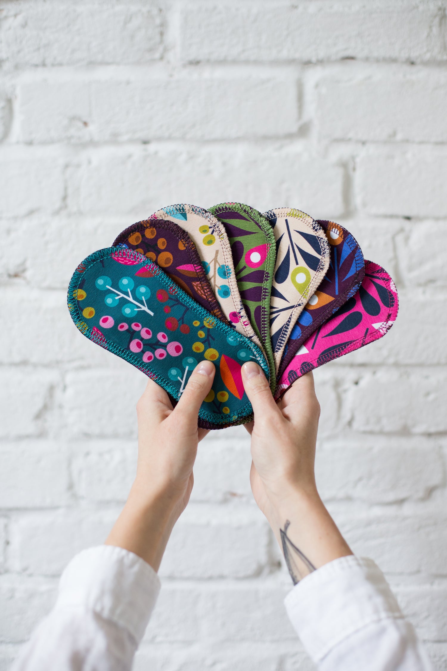 Organic Cotton Reusable Panty Liners with Wings 7-Pack (heavy discharge) - Fruity (white wings)