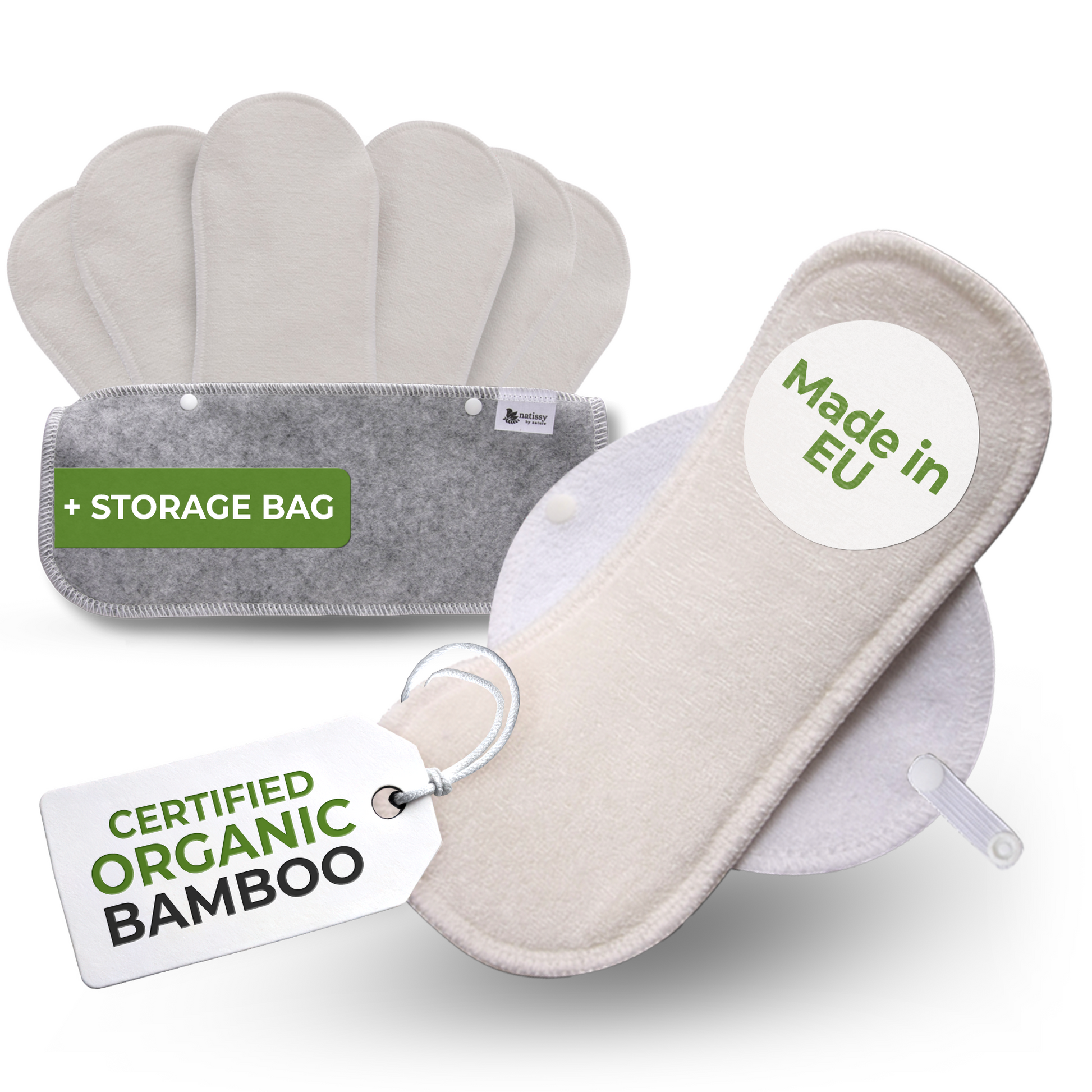 Certified Bamboo Reusable Panty Liners with Wings 7-Pack (normal discharge) - Natural (white wings)